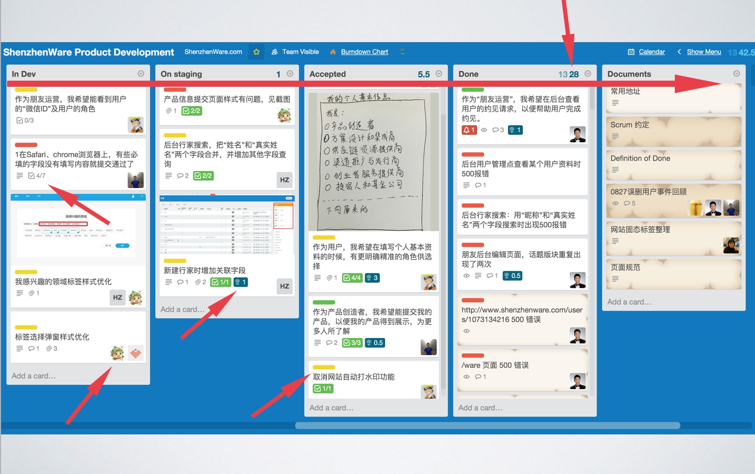 站会时,SM 问:为什么这三张卡还在这儿? 这时,相关的几个人一顿解释,但怎么听起来都像辩解,没有人去挪动卡片。 结束后,我问:刚刚说这三张卡跟实际状态不一致,怎么才能让看板反应真实的状态呢? 大家开始挪卡。